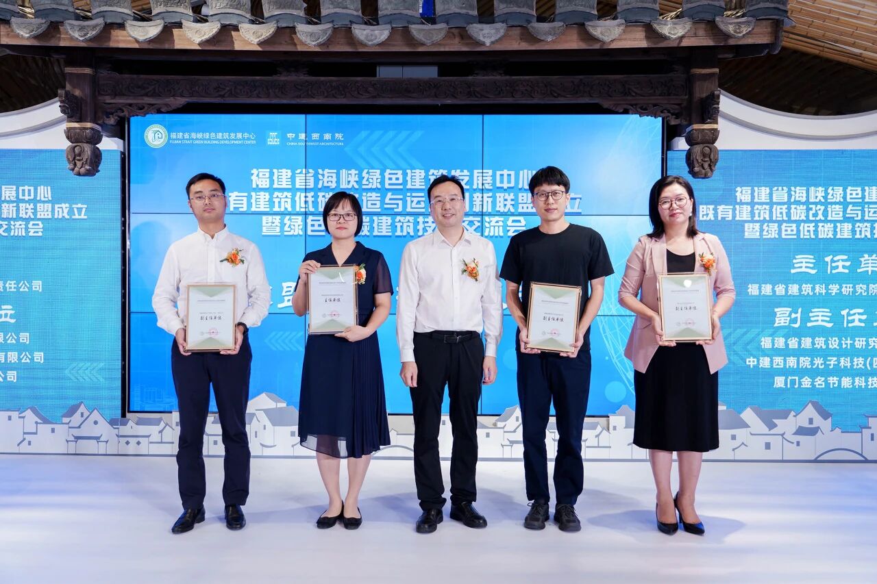 会上宣布了福建省既有建筑低碳改造与运营创新联盟单位名单,并举行授牌仪式,由福建省海峡绿色建筑发展中心王云新理事长为主任单位和副主任单位授牌,福建省海峡绿色建筑发展中心副理事长梁章旋为联盟成员单位授牌。