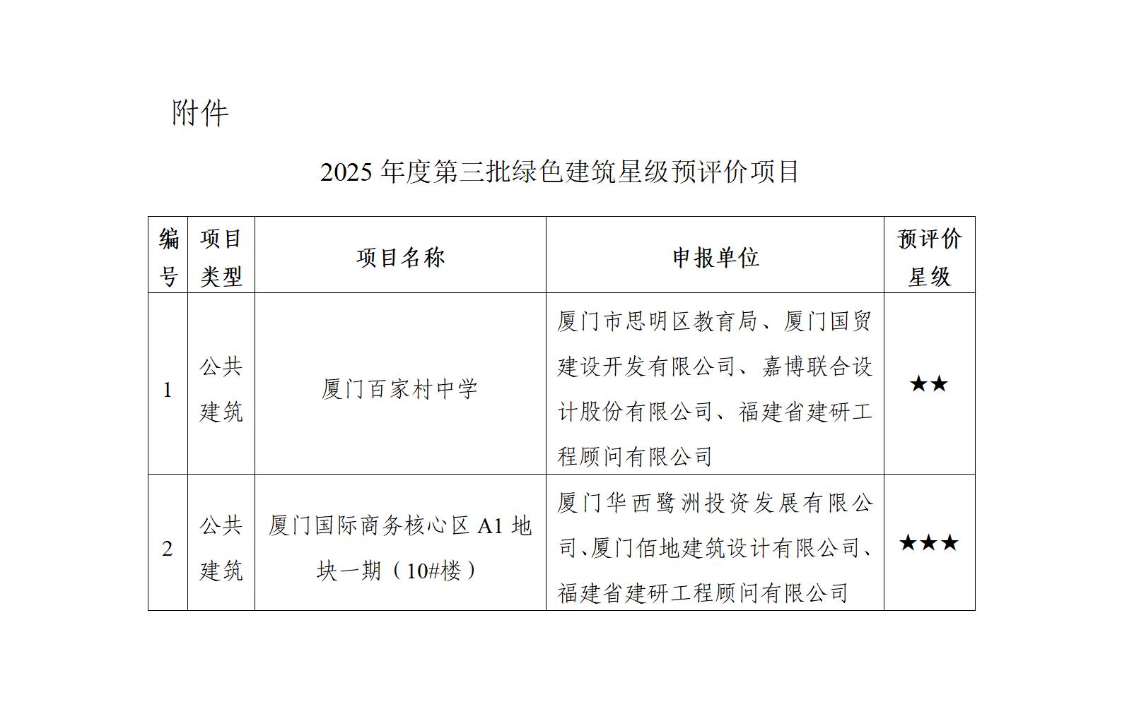 附件:2025年度第三批绿色建筑星级预评价项目