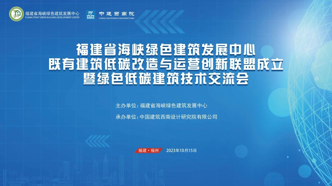 为贯彻落实国家和我省“双碳”相关政策以及城市更新的要求,进一步推进福建省建设领域绿色低碳发展,2023年10月15日,福建省海峡绿色建筑发展中心既有建筑低碳改造与运营创新联盟成立暨绿色低碳建筑技术交流会在三坊七巷全国优秀建筑设计展示馆顺利举办!