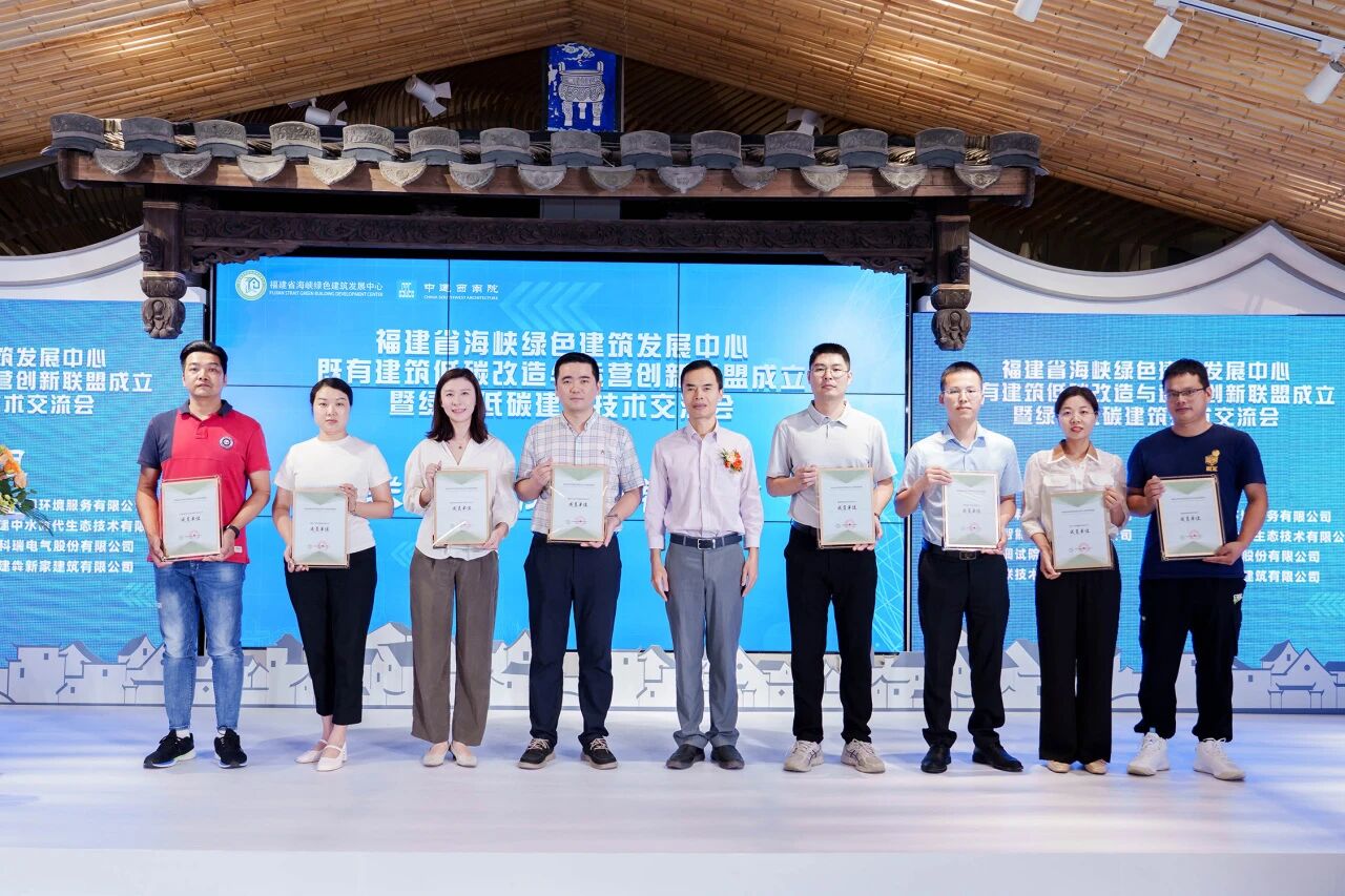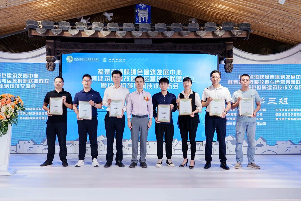 会上宣布了福建省既有建筑低碳改造与运营创新联盟单位名单,并举行授牌仪式,由福建省海峡绿色建筑发展中心王云新理事长为主任单位和副主任单位授牌,福建省海峡绿色建筑发展中心副理事长梁章旋为联盟成员单位授牌。
