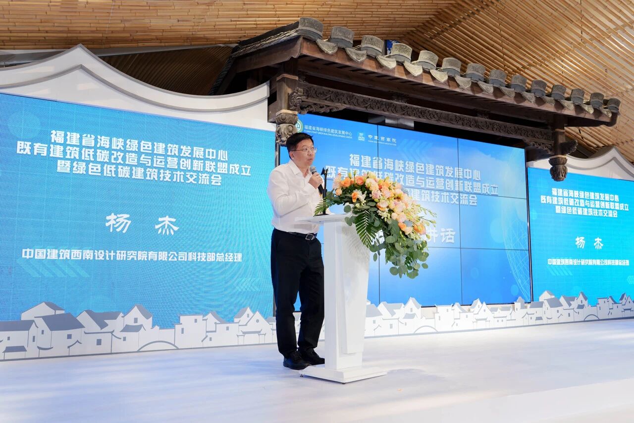 本次活动第二个环节“绿色低碳建筑技术交流会”由福建省建筑设计研究院有限公司总建筑师梁章旋主持。会议承办单位中国建筑西南设计研究院有限公司科技部总经理杨杰先生到会致辞。提出绿色发展已经成为时代的潮流,以绿色经济、低碳技术为代表的新一轮的产业和科技变革正在加速演进,本次交流会对于建筑业的创新发展和转型具有重要的意义。中建西南设计院也将以本次活动为契机,与各相关单位、人员从大局与实际出发,共同探讨未来绿色建筑发展的建设路径,为建筑行业的高质量发展做出更大的贡献。