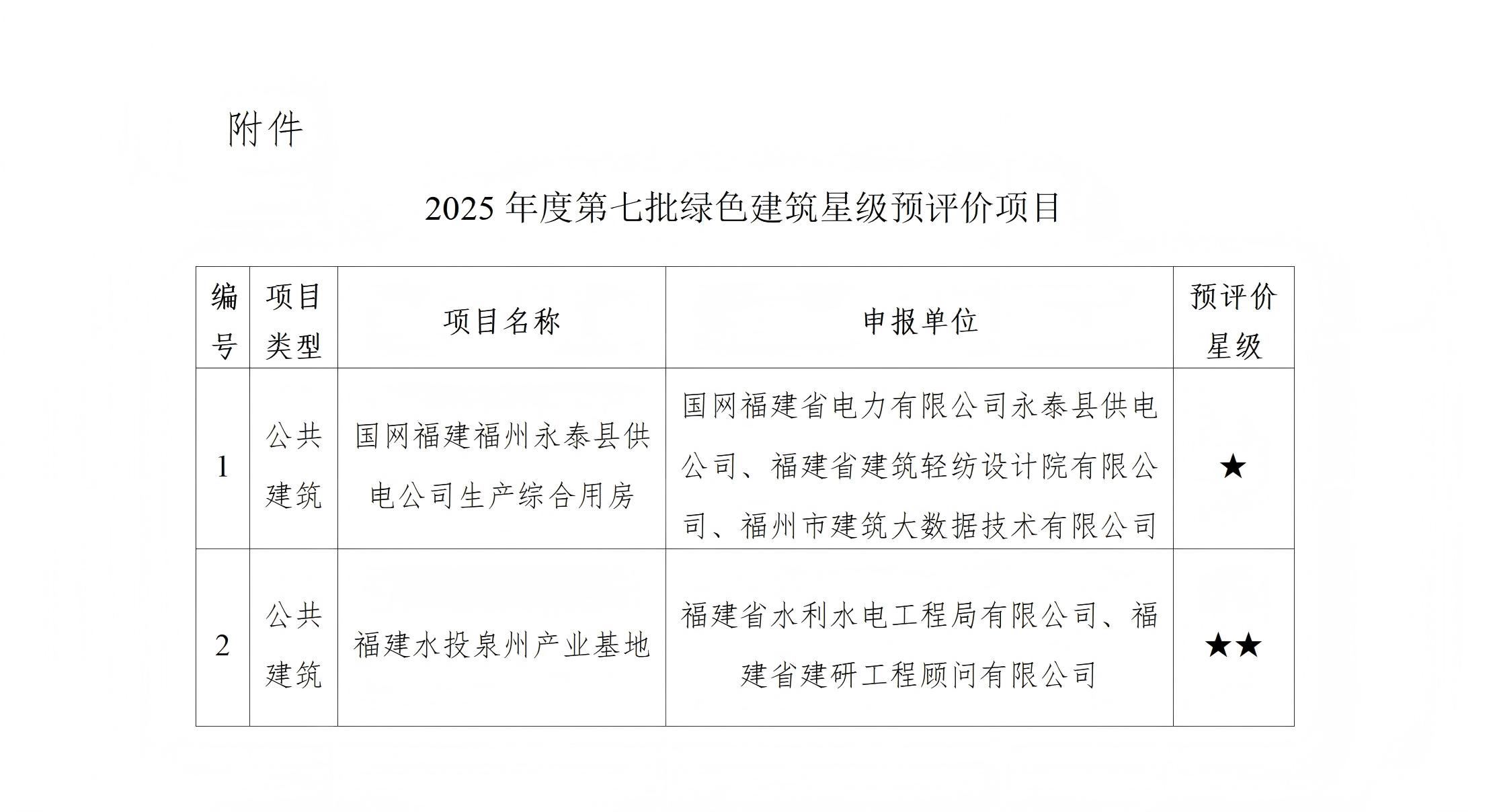 福建省海峡绿色建筑发展中心关于2025年度第七批绿色建筑星级预评价项目的公告